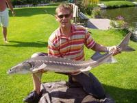Die ausgesprochen gute Wasserqualität und die professionelle Pflege des Angelteiches sind ausschlaggebend, dass hier etwa Störe besonderer Größe und Qualität gefangen werden können. Ein Stör ist schon ein ganz besonderes Objekt der Begierde für einen Angler. Eckhard Berger ist es gelungen in den vergangenen Jahren einen sehr guten und vielfältigen Fischbestand aufzubauen und da gehört die Aufzucht seiner Störe besonders erwähnt.